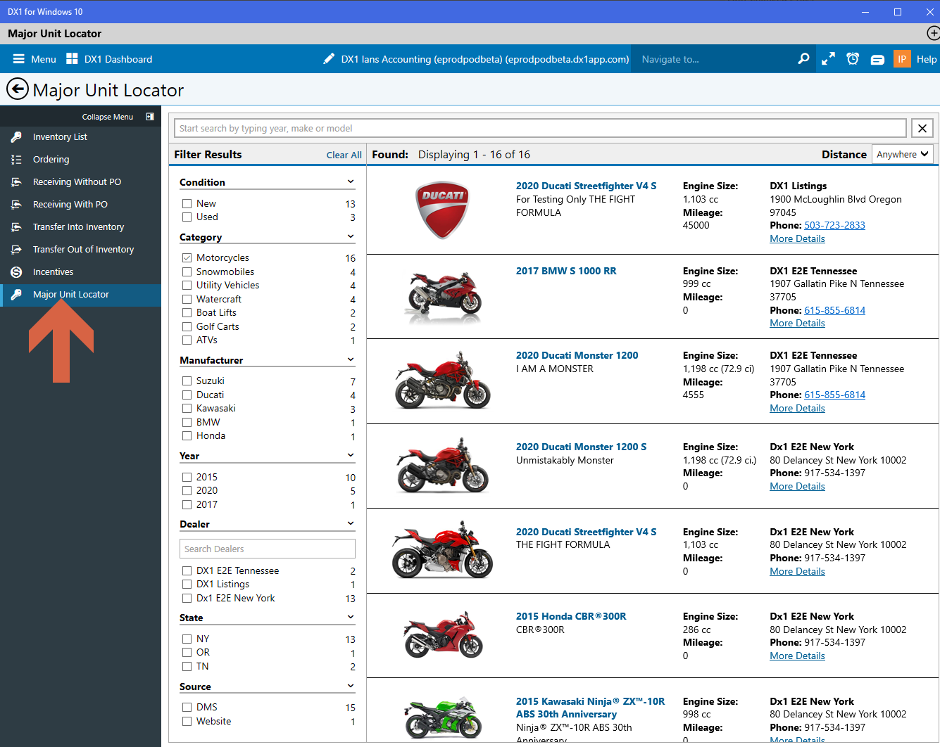 Use the DX1 Exclusive Major Unit Locator to find inventory units across hundreds of DX1 dealers in the country that are readily available for sale. A shared inventory database allows you to quickly search for the inventory that other DX1 dealers have in stock.