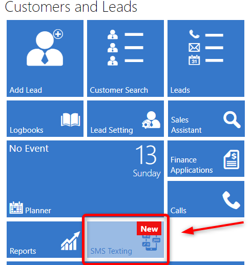 SMS Tile corrected and renamed as SMS Texting under Customer and Leads.