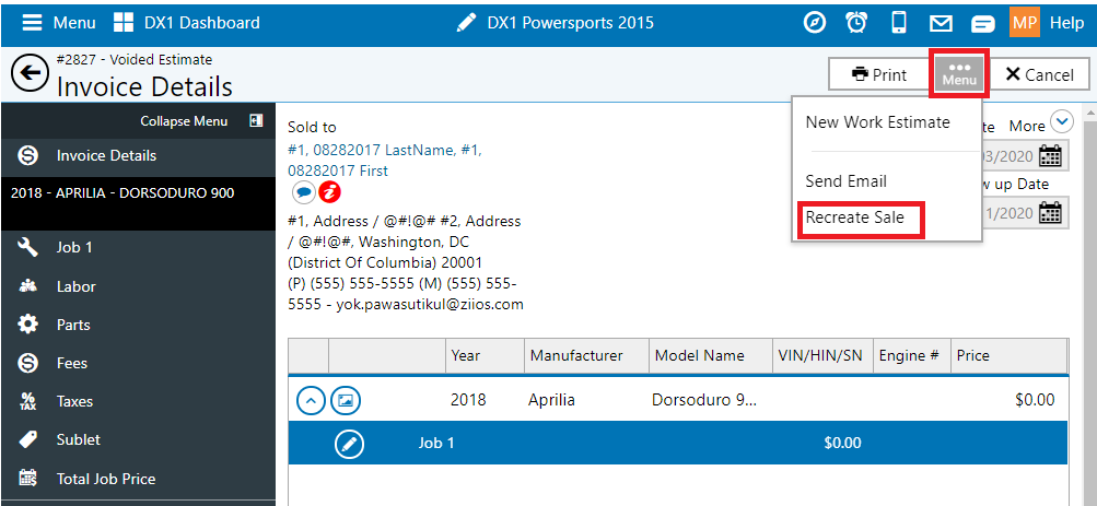 Dealers can now quickly recreate a previously Voided Service invoice