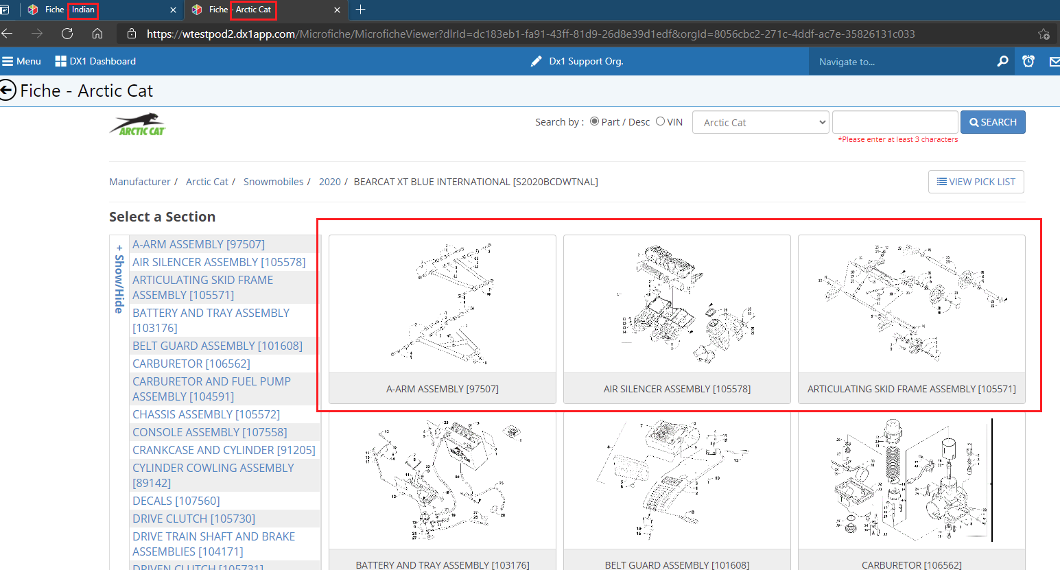 We have updated our parts fiche with larger thumbnails for better visibility of the parts. The thumbnail will now appear larger and clear. In addition, the manufacturer will appear in the page tab. We have done this so that if you have multiple Fiche tabs open you can easily identify which is which.