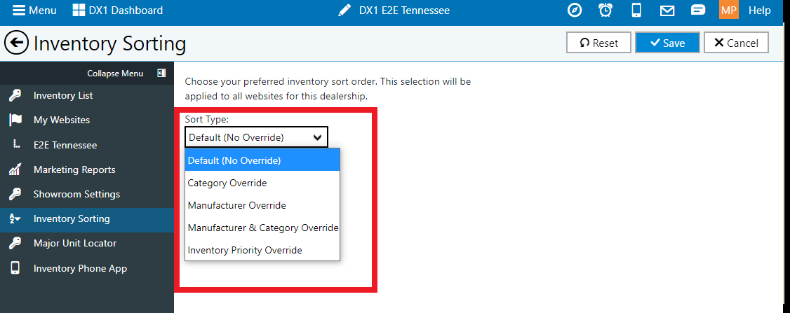 List your inventory in the order you want in your DX1 website. We have added a setting in DX1 called Inventory sorting that allows you to manually override inventory sort order for the listings in your website.