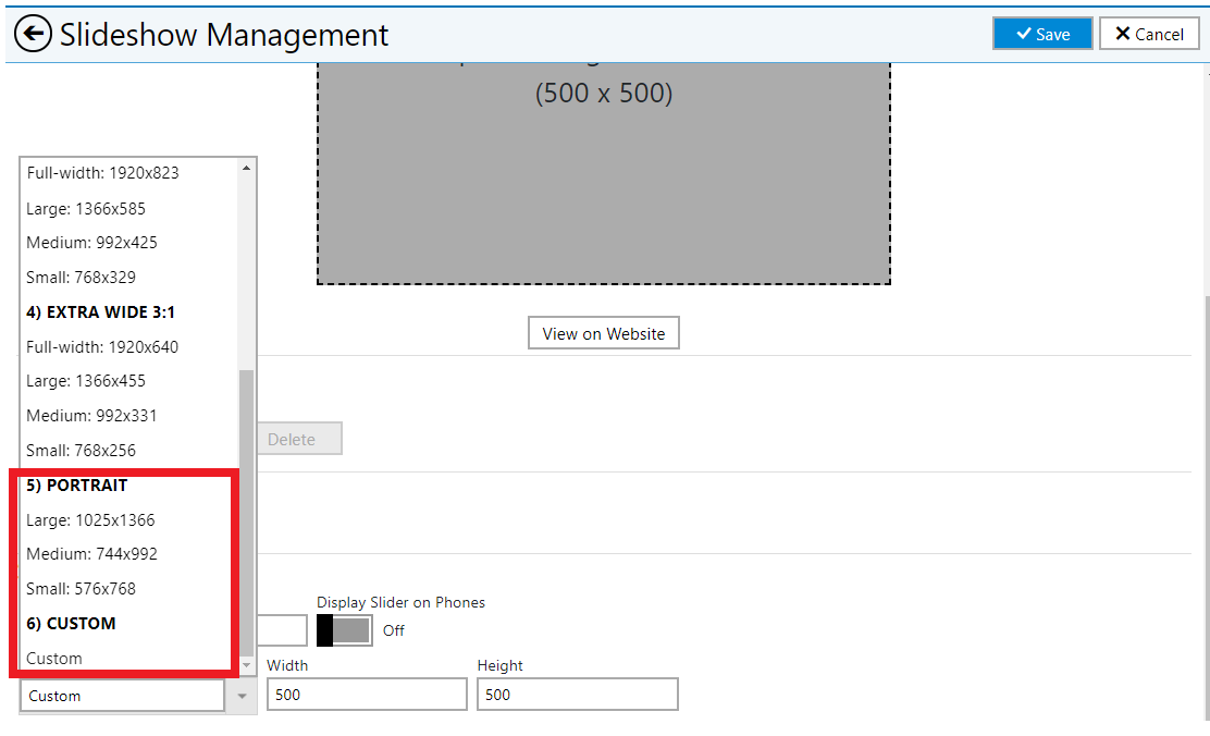 You need not worry about the image size not matching the slider size while uploading it in DX1 slideshow. We have added a new set of sizes to the DX1 Slideshow menu for portrait image orientation. There is also a CUSTOM option on the menu that allows you to manually input the size of the images. These extra options will definitely make your image uploading experience easy and efficient.
