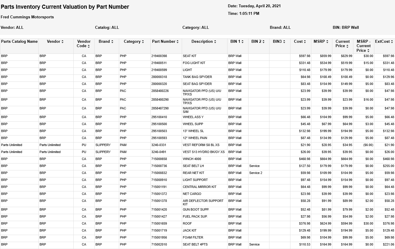 In the last of Bin improvements for this year we added bins 1,2,3 to Parts Inventory Current Valuation by Part Number Report as well as the printable version.