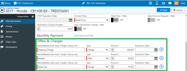 We’ve added Charges to the existing Offers section in listing inventory so you can now display any additional fees and charges on inventory and showroom listings on your website.