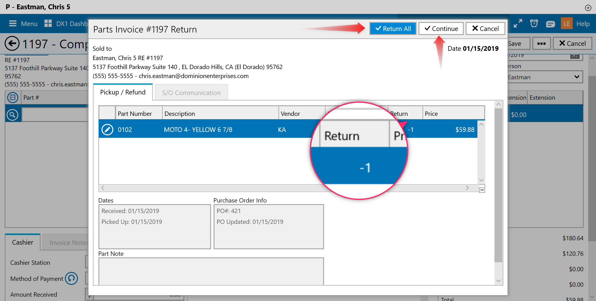 How to Refund the Entire Parts Invoice