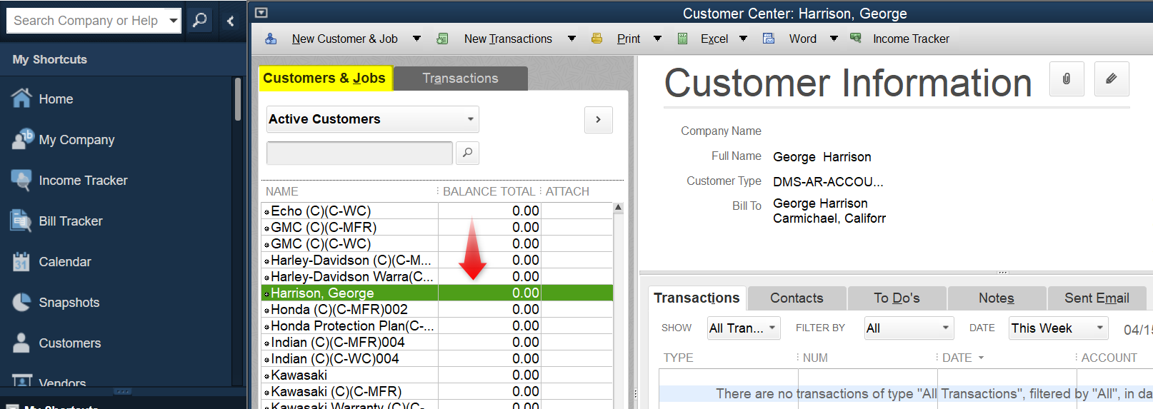 Return to DX1, Customer List and search for the customer. Under the AR tab The name and credit limit amount set in QB will show. Set the Account Receivable Account then Save