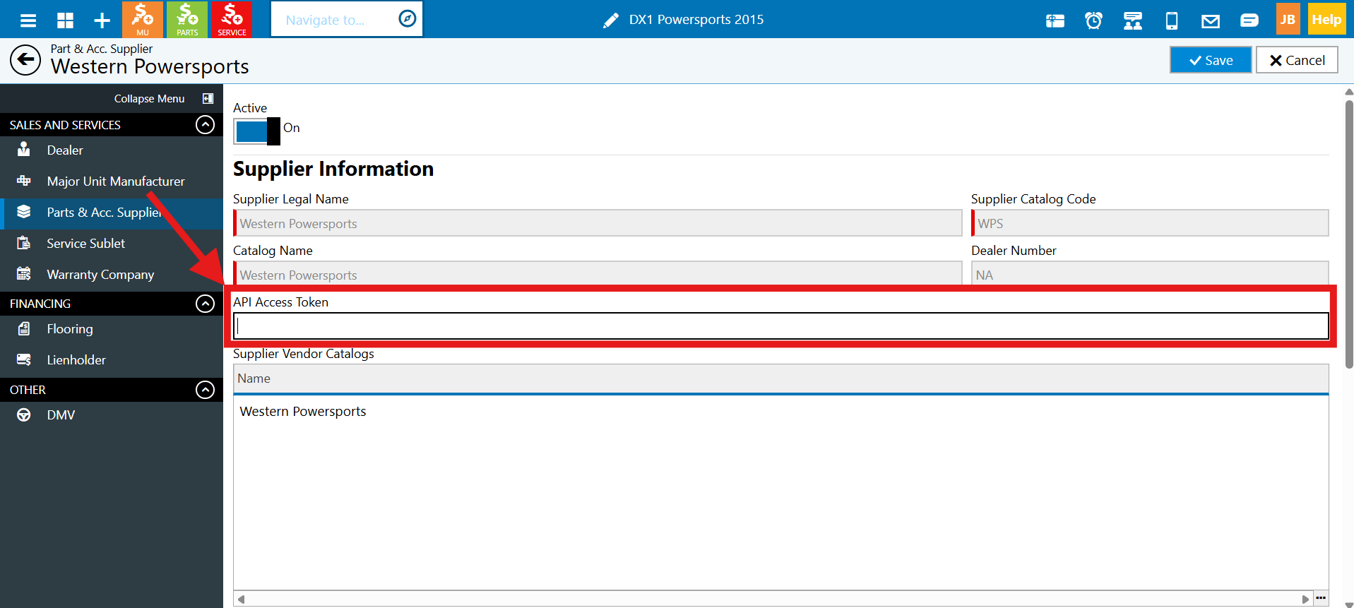 Western Powersports offers dealer-specific pricing that can be loaded directly into DX1, which is updated nightly. In addition, it enables Warehouse availability in Parts Invoicing and Ordering and Integrated Ordering. To take advantage of the suite of features, you need to obtain your dealership's WPS API token and enter it into DX1. Here are the steps you will need to take.