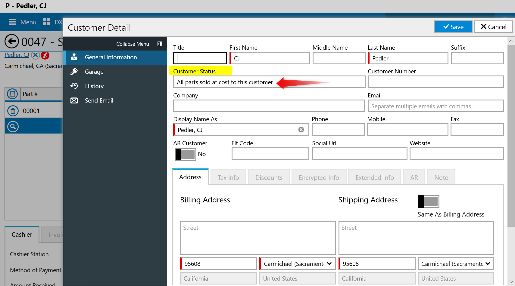 We have added the ability to view the customer status on all invoice screens. You will now see a red info icon when the customer that has been added to the invoice has a status within their customer record, simply hover over the icon with the cursor to see the status.