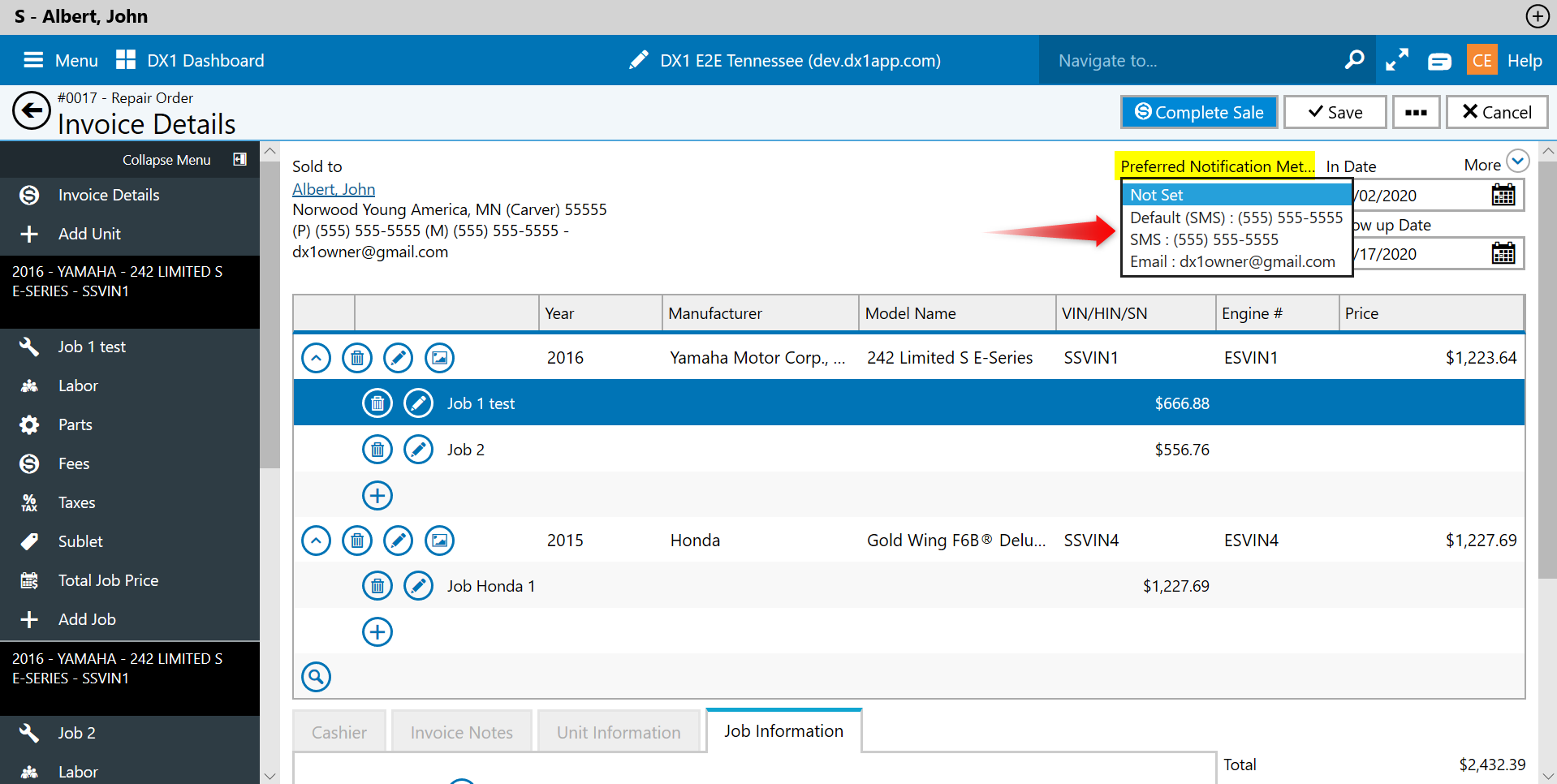 The Preferred Notification Method field has been added on the right. Click the drop down for choices.