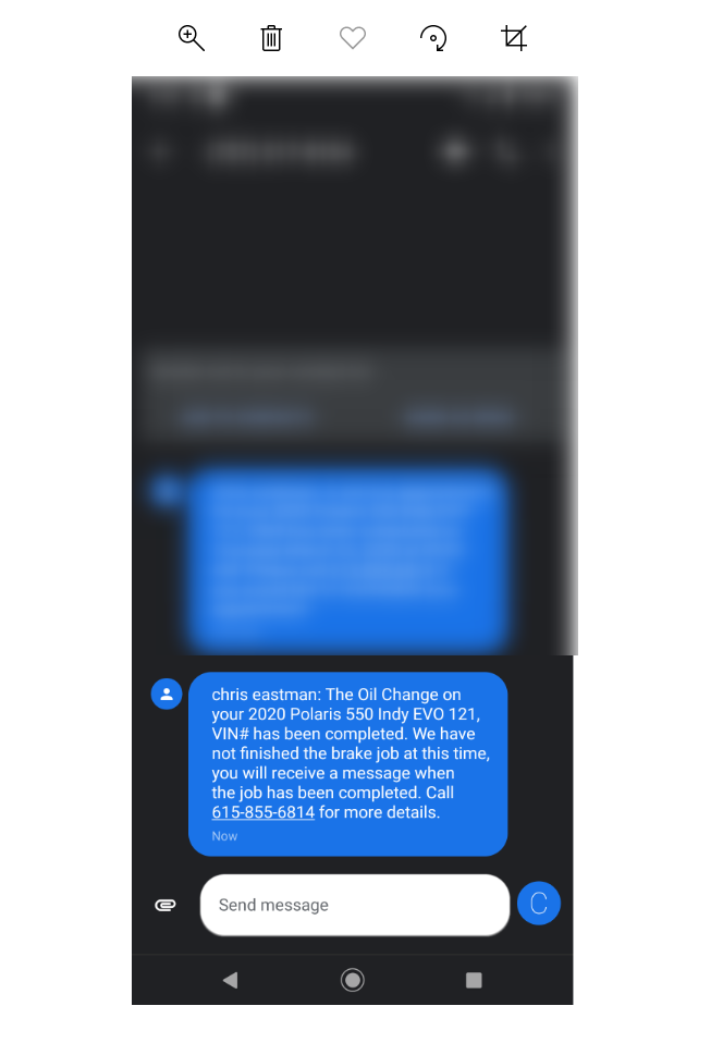 Customers can now receive a text message for repair orders. Messages are available for the following: