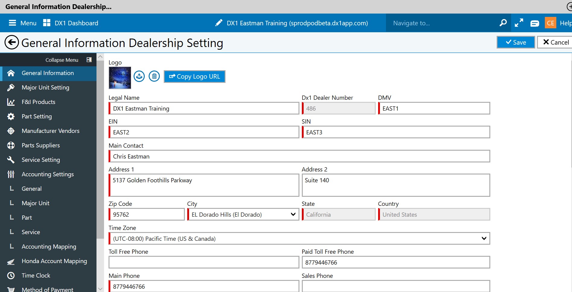 The next few examples will focus on the menu on the left hand side once in dealership settings Note: the areas shown are based on the defaults created at the time the dealership went live.