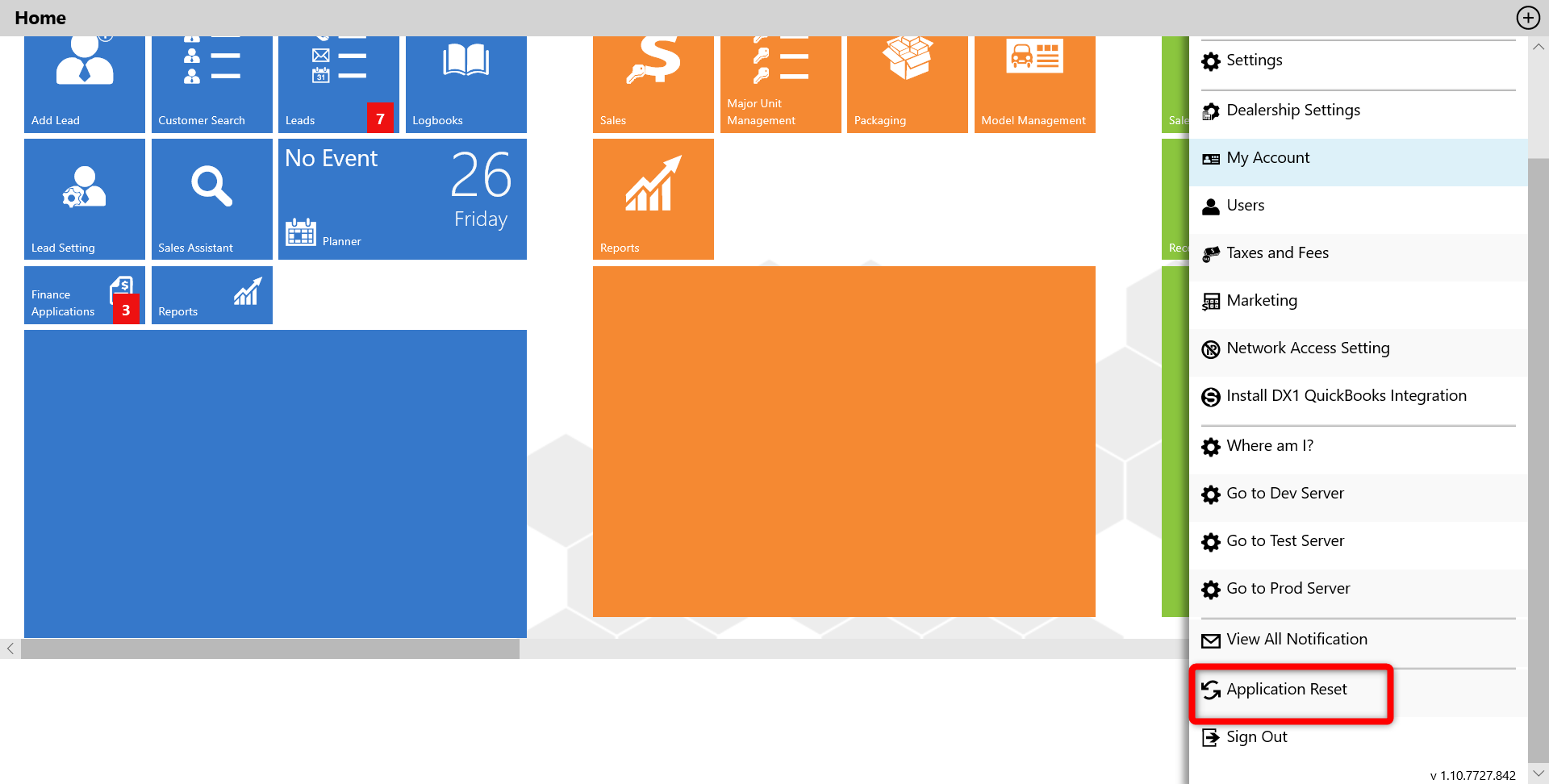 Note: An Application Reset will need to be done before the change will be put into affect. Click the initials a second time then choose Application Reset as shown.