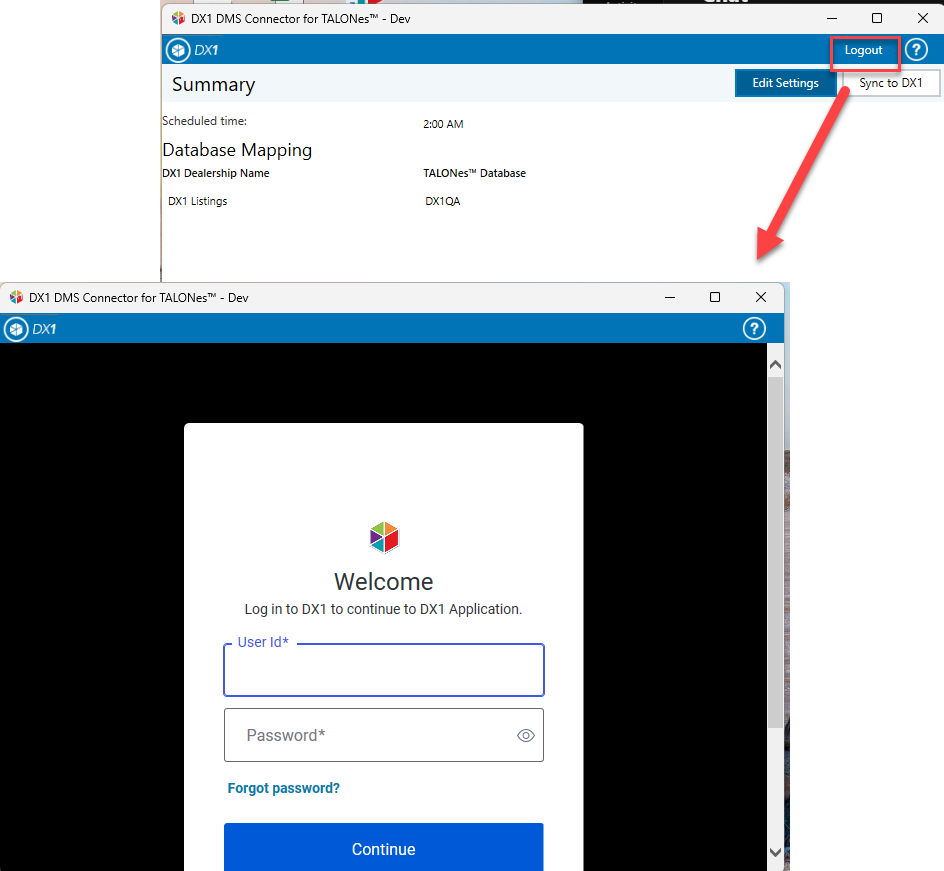 1. Look for the DX1 DMS Connector icon in the Windows system tray in the lower right hand corner. Double click to open the application window.